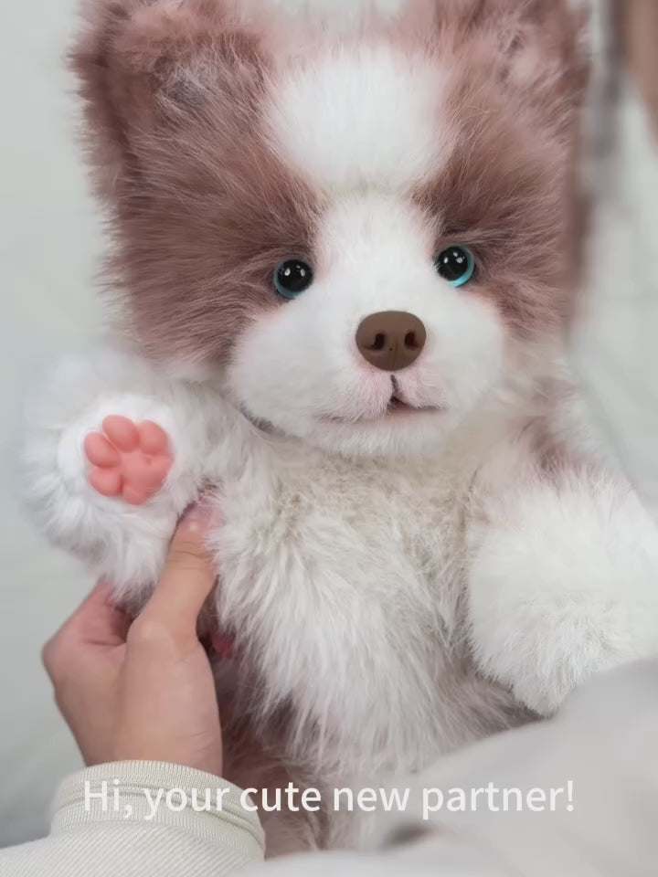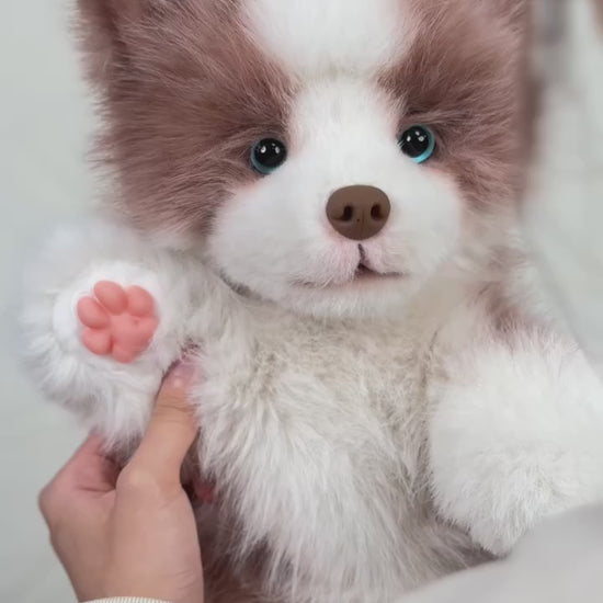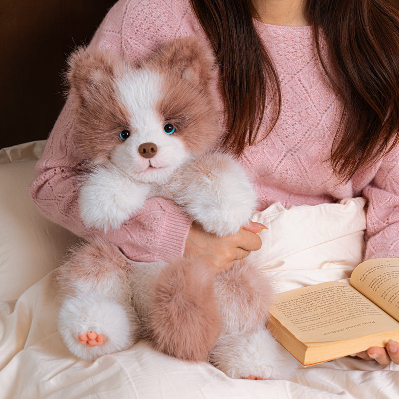 Realistic Design – Handmade to mimic the lifelike look of a fluffy dog, complete with soft fur, expressive eyes, and a plush tail.